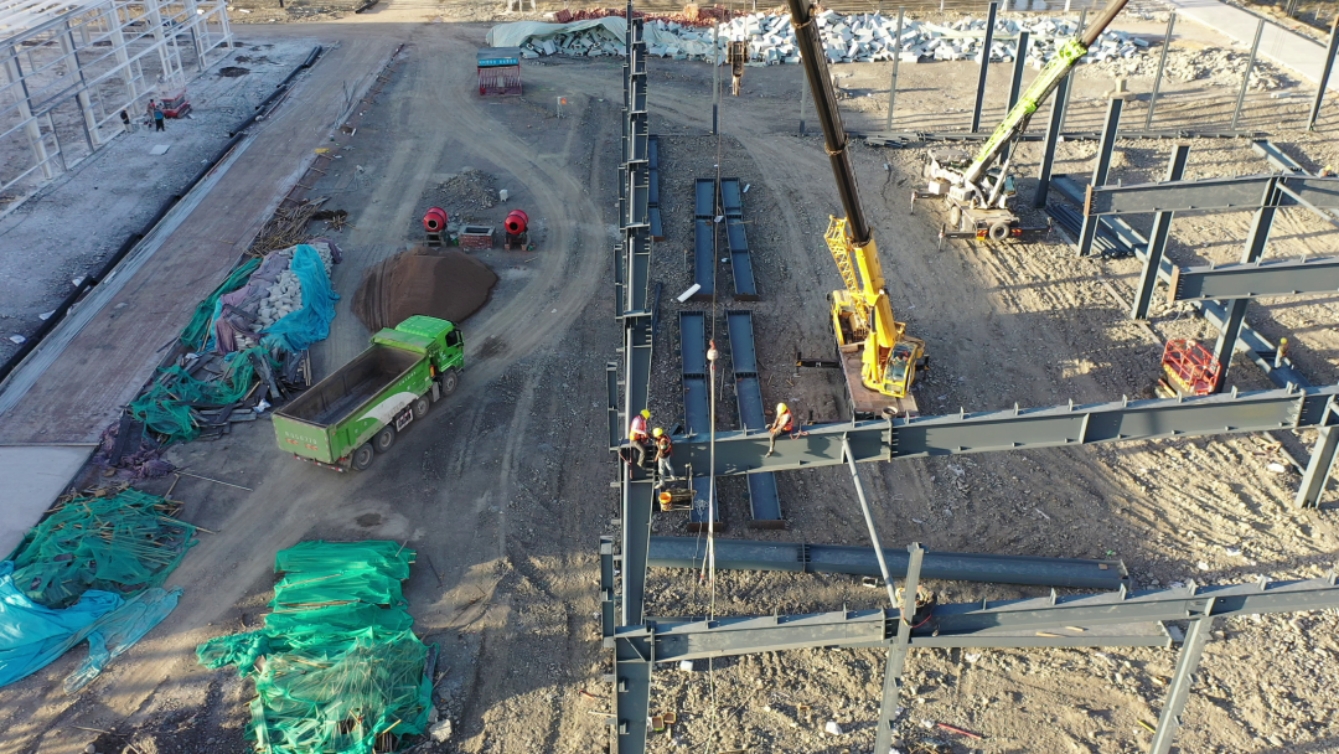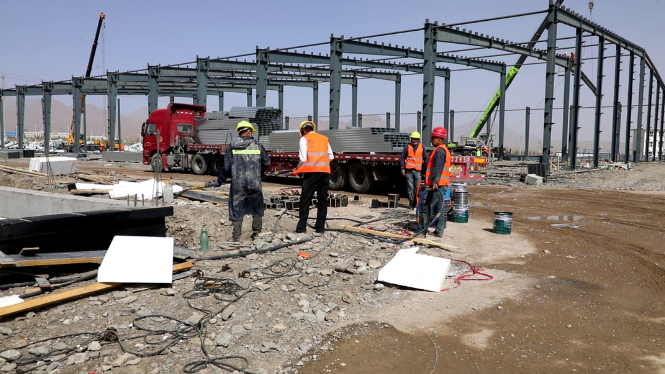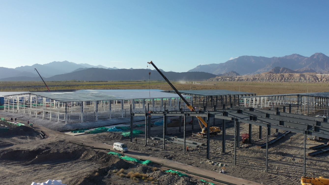 在乌恰县冷链物流基础设施建设项目施工现场,记者看到,一座座新厂房拔地而起,工程车辆来回穿梭,工作人员有序进行施工作业,一片热火朝天的建设景象。