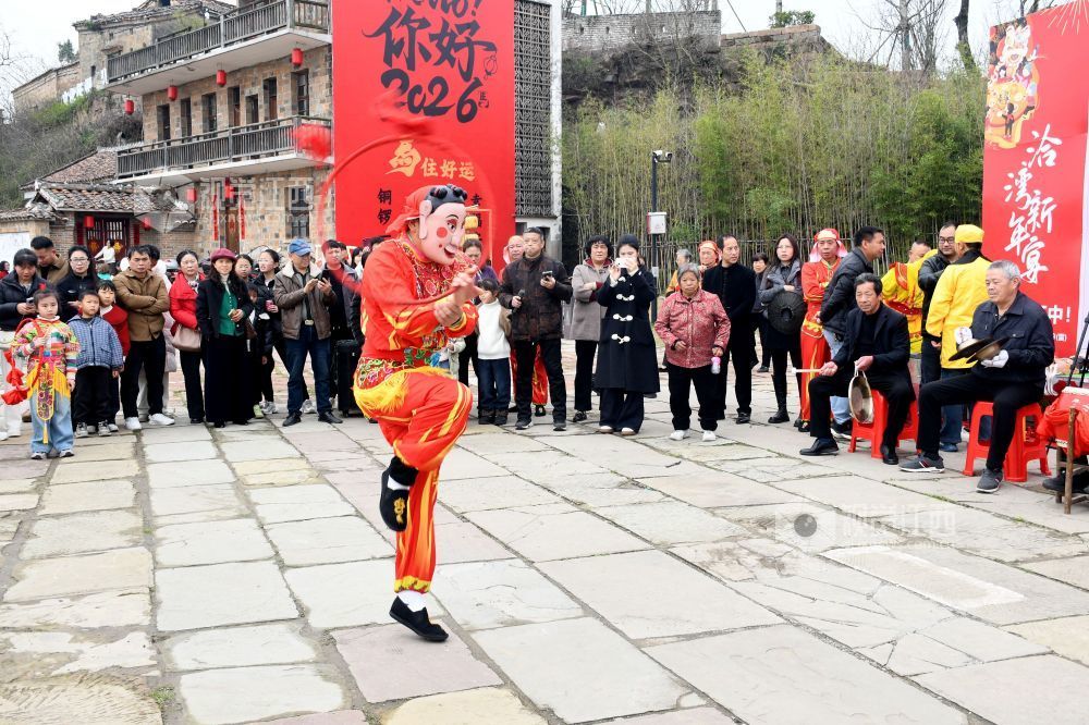 2026年3月8日,江西省抚州市南丰县洽湾船型古镇游客中心,水南村的傩师们正在跳傩祈福,吸引游客们驻足观看、拍照。 南丰傩舞始于汉初,2006年入选首批国家级非物质[详细]