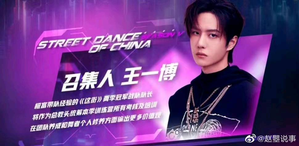 网传的《这就是街舞》第五季招商名单王一博也只是召集人,这说明王一博可能会去参加街舞录制,但不太可能是常驻,毕竟王一博要进组,即使街舞和电影拍摄场地都在杭州,但时间上可能会有冲突。